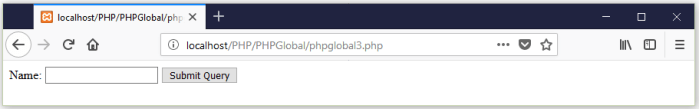 The example below shows a form with an input field and a submit button. When a user submits the data by clicking on “Submit”, the form data is sent to the file specified in the action attribute of the <form> tag. In this example, we point to this file itself for processing form data. If you wish to use another PHP file to process form data, replace that with the filename of your choice. Then, we can use the super global variable $_REQUEST to collect the value of the input field: