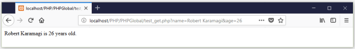 <a href=”test_get.php?name=Robert Karamagi&age=26″>Test $GET</a>