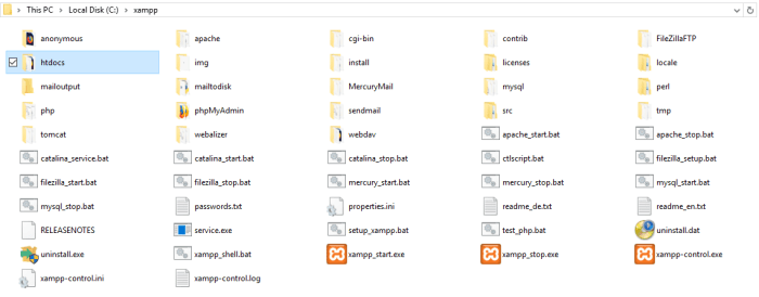 To deploy the example, open your XAMPP folder on your hard drive and enter the ‘htdocs’ folder.