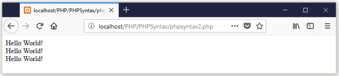 Below, we have an example of a simple PHP file, with a PHP script that uses a built-in PHP function “echo” to output the text “Hello World!” on a web page: