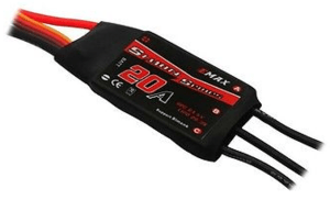The Electronic Speed Controllers are optimized for best performance, low-voltage protection, over-heat protection and self-check functions. They separate the power supply for the Micro-Controller Unit (MCU) and Battery Eliminating Circuit (BEC), enhancing the ESC’s ability of eliminating magnetic interference. The Throttle range can be set to be compatible with different receivers. They are equipped with a built-in BEC. The dimensions are 73mmx28mmx12mm. The weight is 41g. The continuous output current is 40A and the burst output current is 50A. The BEC Output is 3A and 5V. Four ESCs are used, i.e. one for each Outrunner motor.